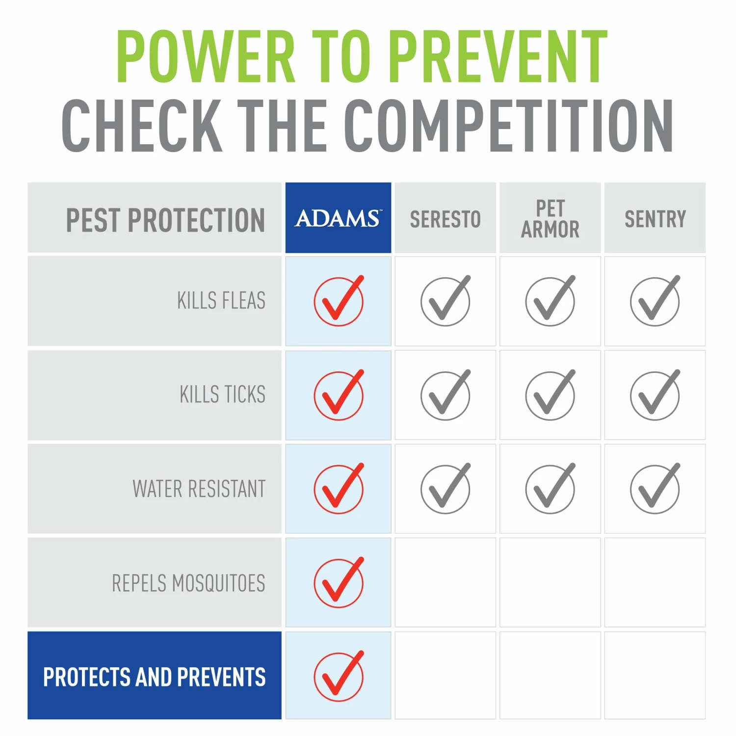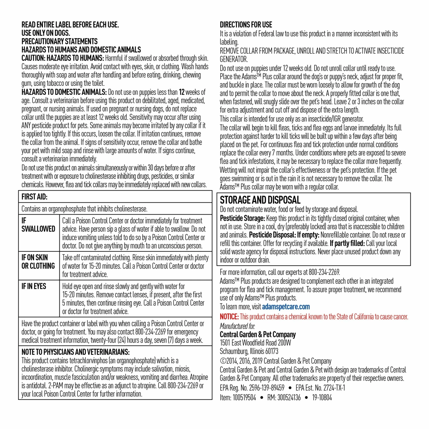 The Adams Plus Flea and Tick Collar for Dogs is perfect for smaller dogs. It provides quick relief from biting fleas and ticks and continuous protection for up to 7 months. Our collar prevents infestation by killing 3 stages of the flea and tick life cycles. This collar provides one-step to treatment and prevents re-infestations. Even when wet or completely submerged, the collar continues to be effective. This collar is also fully adjustable and water-resistant.