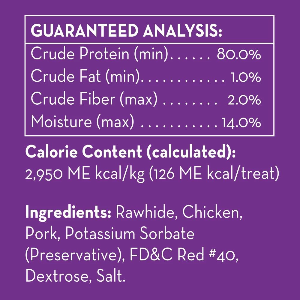 - REAL CHICKEN WRAPPED WITH PREMIUM RAWHIDE: Made with real chicken in the middle for a delicious treat dogs can’t resist