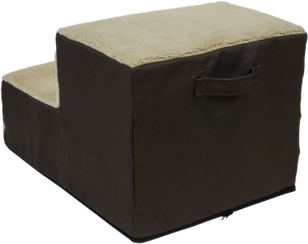 For pet parents who love to have their pets near them, Cozy Pet steps always give your pet access to your lap to be close to you. Cozy Pet Steps for larger pets help your pet get up and down from your human sofa, and beds, in a safe and controlled manner. These Cozy Pet steps have a wider step depth and a wider step base that fits pets from 20 pounds to over 125 pounds. Steps eliminate the need for jumping up and down from higher surfaces, which is especially good for older pets that have become less agile. Keep your pet close to you and protect their back health with Cozy Pet steps for larger pets.
