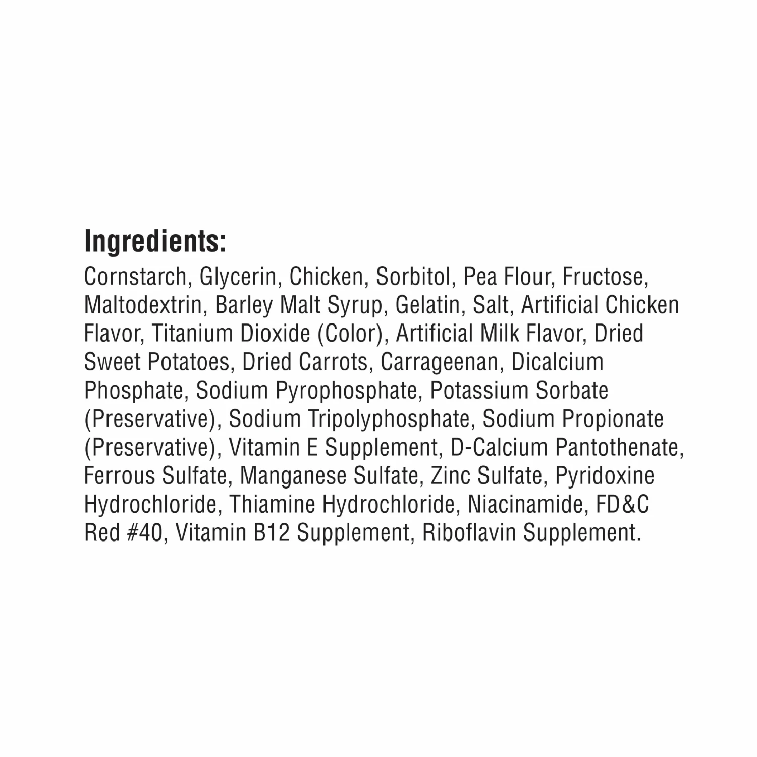 DreamBone chews have all the benefits of a rawhide chew…without the rawhide. No-rawhide DreamBone chews are made with real chicken, beef, bacon and cheese or sweet potato and wholesome vegetables for a scrumptious taste dogs can’t resist! No-rawhide DreamBone Mini Chews for dogs are made with real chicken and wholesome vegetables for an irresistible taste dogs dream about. Enriched with vitamins and minerals, these chews are a healthy alternative to rawhide. Treat your small or toy-sized pup to these highly digestible and 100 percent delicious mini chews. DreamBone Mini Chews promote healthy teeth and gums through the natural action of chewing, making them a treat both you and your dog can love. Give your dog 1 to 2 DreamBone Mini Chews per day. Always supervise your pup during chewing activity and provide access to fresh, clean water. These chews are intended for intermittent or supplemental feeding only. Store in a cool, dry place. After opening, reseal or store in an airtight container to preserve freshness. The experts at DreamBone brand want you to have healthy, happy dogs. We know that your dog is more than a pet – they’re family. Chewing is an essential, healthy and enjoyable activity for dogs. Dog chews help keep teeth clean, jaws strong and are mentally stimulating to help prevent boredom and destructive behavior. DreamBone chews help satisfy a dog’s natural chewing instinct.