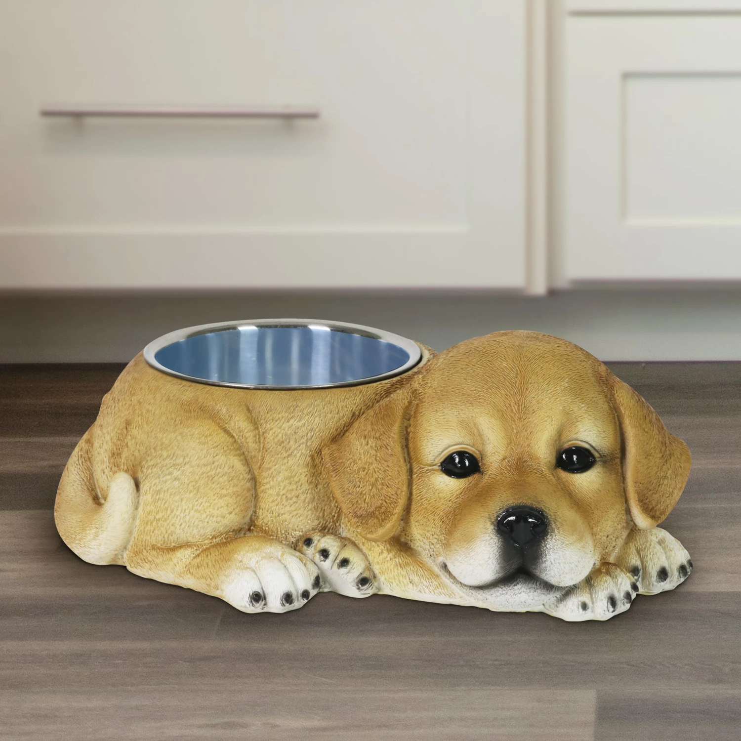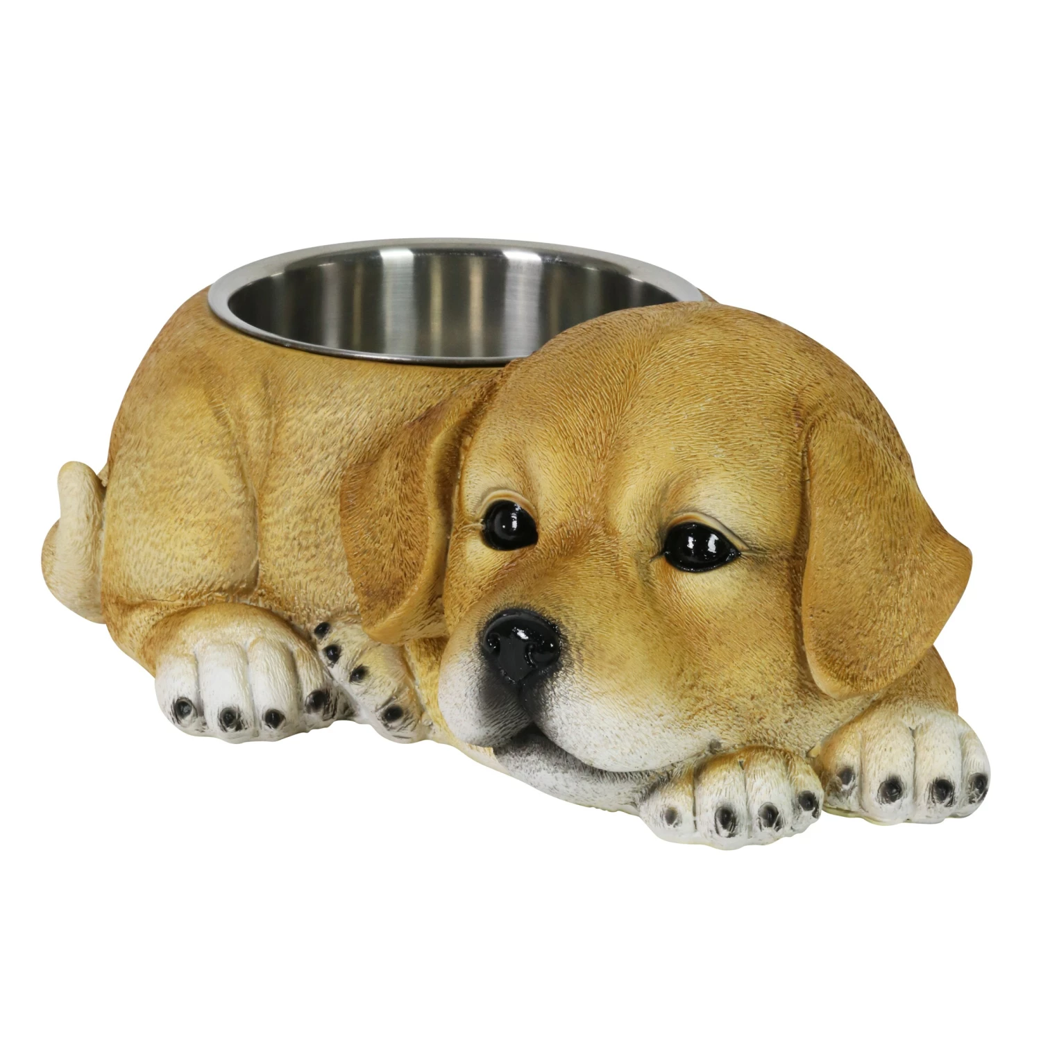 Fido deserves better! Why settle for a boring dog bowl when you can add a burst of personality with this adorable Labrador Bowl? Beautifully hand painted with great detail, you may find yourself doing a double take! A perfectly sized stainless steel bowl is included for your convenience. Add a touch of whimsy and fun to your home with this charming, beautifully crafted home decor by the Exhart family.