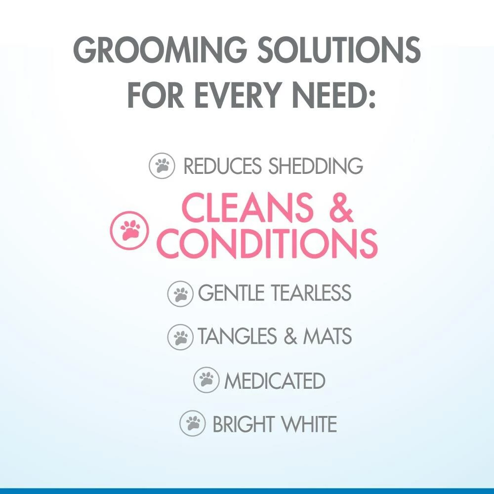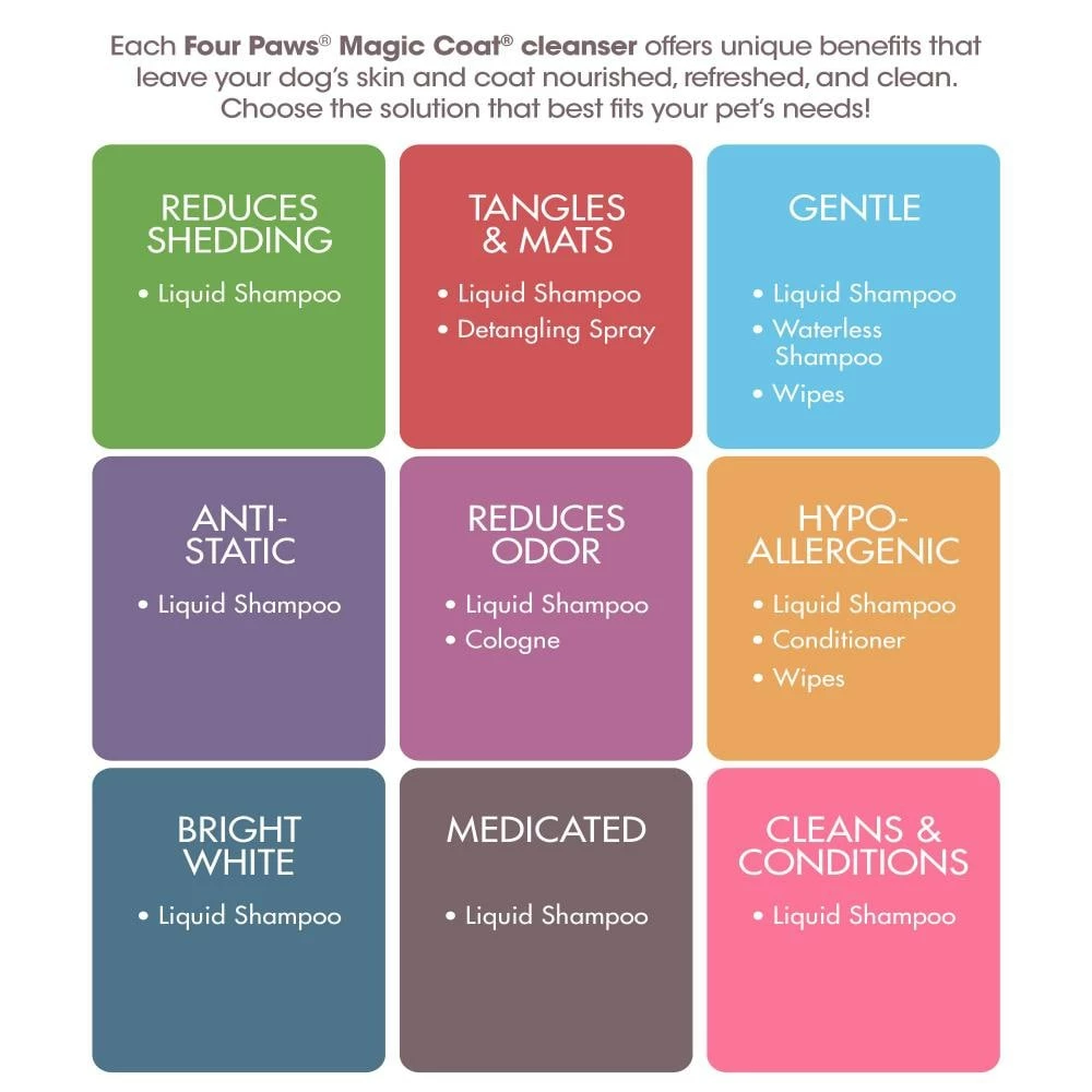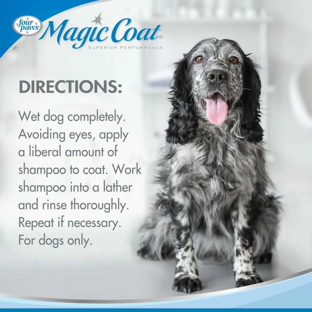 Since 1970, Four Paws has provided the best products to simplify pet parenting while keeping fur pals happy, healthy, and clean. Bath time has never been so easy with our Magic Coat 2 in 1 Dog Shampoo and Conditioner that cleans and moisturizes conveniently in one step! This dog shampoo and conditioner in one is enriched with proteins that fortify and revive the coat. The result is a healthy, tangle-free coat and a Calming Waters scent that dogs and pet parents alike will appreciate. Free of parabens and dyes, this 32 ounce bottle of dog shampoo and conditioner is proudly made in the USA!
