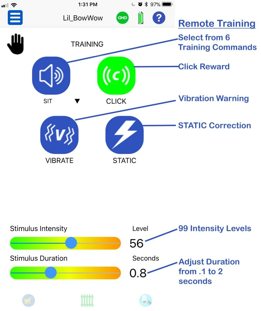 - Customize stimulus intensity and duration for each dog