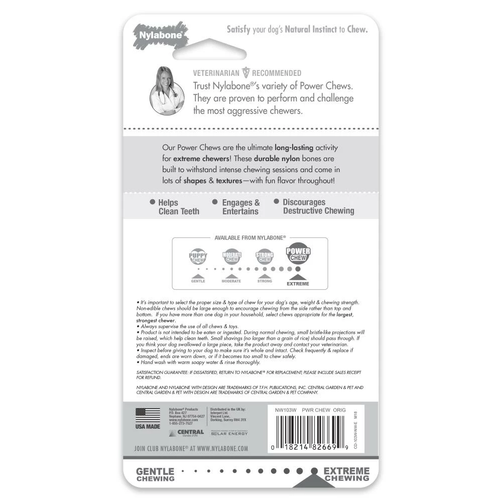 Give your dog something good to chew on. Made with tough, durable nylon, our Dura Chew Bone Dog Chew Toy satisfies powerful chewers. It provides long-lasting enjoyment, satisfies the natural urge to chew, and encourages positive chewing habits. Plus, the bristles raised during chewing promote clean teeth and help control plaque and tartar. Different dogs have different chewing styles and strengths, even within the same breed, so be sure to choose the correct chew toy size and strength for your dog.