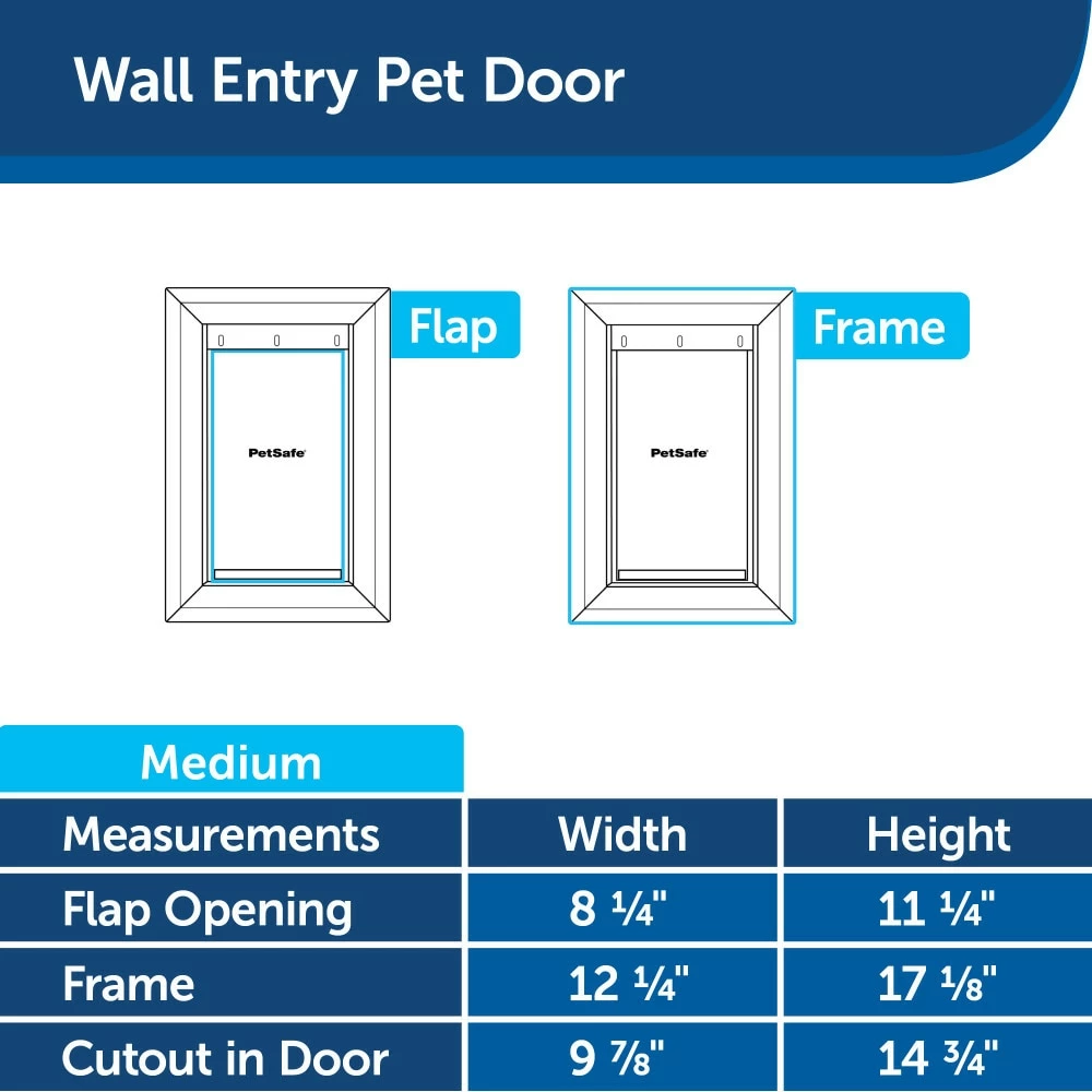 The PetSafe® Wall Entry Pet Door™ is a pet-sized door to your home—no dogie doorbell required! A wall-entry door is great for homes where installation to an entry or side door is not practical. Give your cats and dogs freedom to go in or out without asking for your help to open the door—perfect for potty breaks or play time. The telescoping tunnel accommodates walls that are 4-3/4 in – 7-1/4 in thick; compatible extension kits for thicker walls over 7-1/4 in are sold separately. This DIY project easily installs in all types of interior and exterior walls, and comes in multiple sizes so you can find the perfect fit for your pet. PetSafe® brand is here to help you and your pet live happy together™.