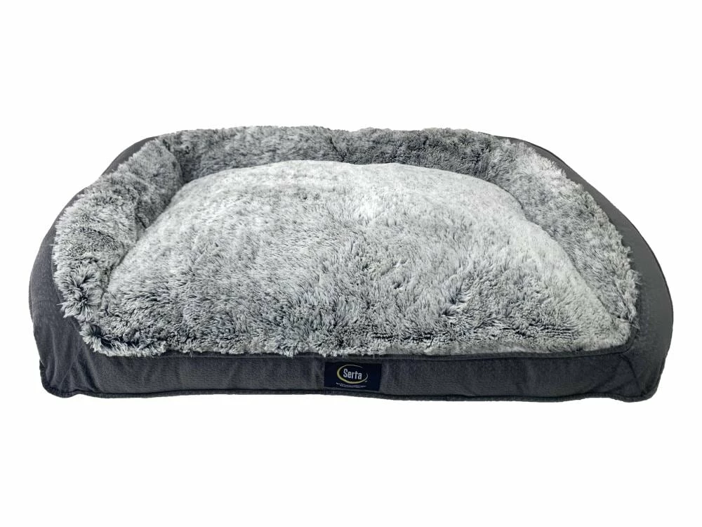 This couch style pet bed has a soft, plush sleep surface and is filled with supportive, eco-friendly polyester fill.