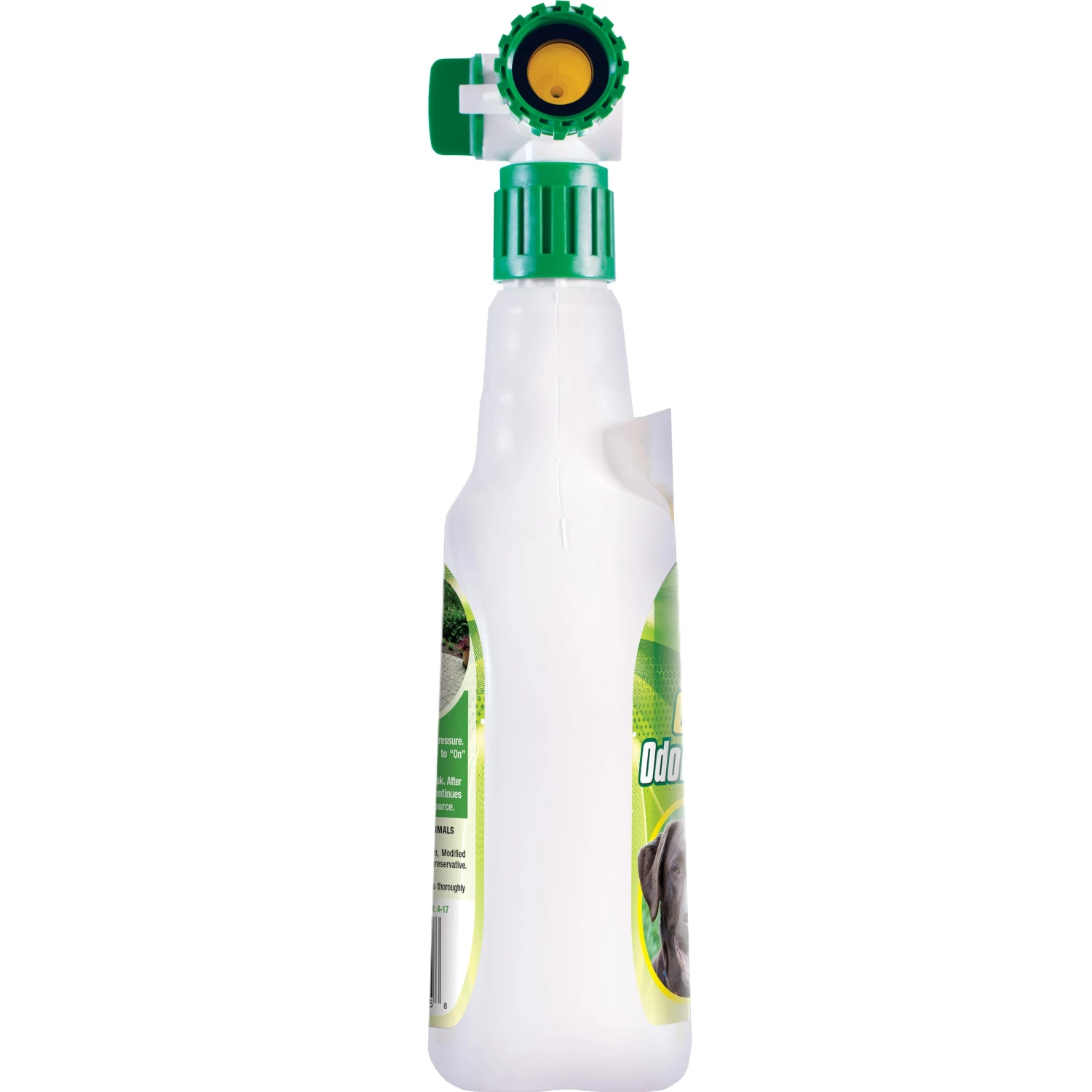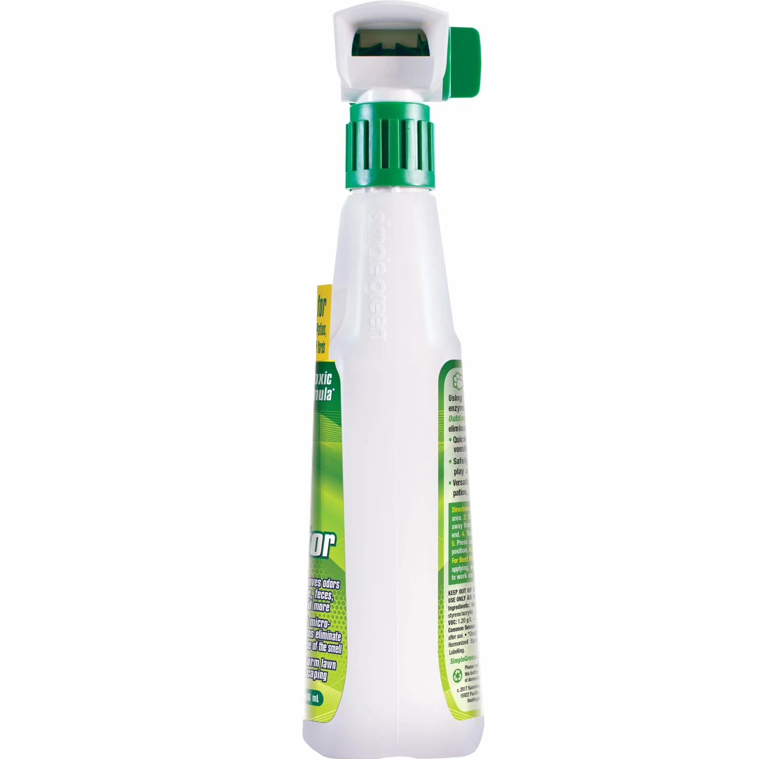 Simple Green Outdoor Odor Eliminator removes odors left behind by urine, stool, vomit and other organic matter. It uses powerful, natural enzymes to eliminate odors at the source on grass, turf, gravel, concrete and more. It is safe for use on patios, decks, and in dog runs and yards and leaves behind a fresh, clean scent. The bottle features a hose attachment nozzle for easy spray application.