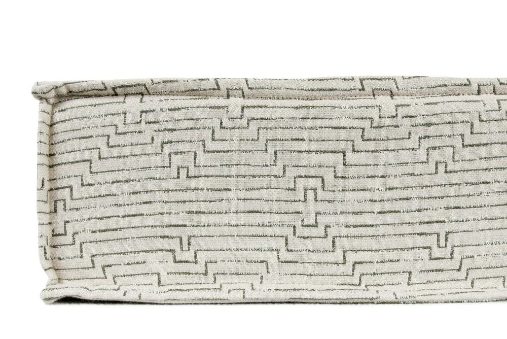 Whether your furry family member is a belly-sleeper, back-sleeper, paws-in, or paws-out, our Lounger bed is sure to be the most comfy place for a nap. Our Lounger beds are over-stuffed with a proprietary fill made from recycled plastic water bottles that gives just the right amount of support without flattening or clumping over time. We even tailored the seams with a mini-flange inspired by fine home furnishings. Sewn in a beautiful cream and moss colored Sunbrella fabric, with a modern geometric pattern, that is soft to the touch, durable, resists moisture, and is washable. There is simply no better fabric choice for a pet bed. Each piece is made by hand in the USA and begins manufacturing the day you place your order. Thoughtfully designed with your dog and your home in mind, our Lounger bed performs as good as it looks.??We recommend measuring your sleeping pet to find the perfect bed size. Pets who curl up to sleep can fit on a smaller bed, while those who stretch out need a larger bed. To determine the ideal bed length, measure your pet in their typical sleeping position, then add 6-10” for the final bed size. When in doubt, we suggest ordering the size up. Please double check that you have chosen the correct size before placing your order.??Small: 22.5 in. x 22.5 in. x 9 in. high (dogs less than 30 lbs)?Medium: 28 in. x 28 in. x 10 in. high (dogs 30-60 lbs)?Large: 42 in. x 30 in. x 12 in. high (dogs 60-90 lbs)?X-Large: 47 in. x 36 in. x 12 in. high (dogs over 90 lbs)