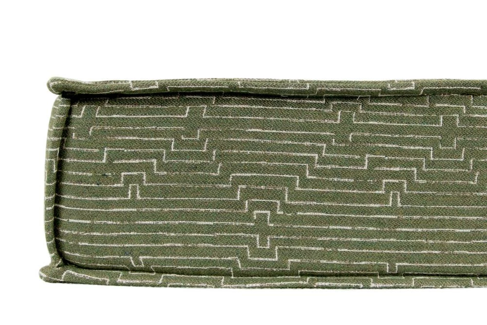 Whether your furry family member is a belly-sleeper, back-sleeper, paws-in, or paws-out, our Lounger bed is sure to be the most comfy place for a nap. Our Lounger beds are over-stuffed with a proprietary fill made from recycled plastic water bottles that gives just the right amount of support without flattening or clumping over time. We even tailored the seams with a mini-flange inspired by fine home furnishings. Sewn in a beautiful moss colored Sunbrella fabric, with a modern geometric pattern, that is soft to the touch, durable, resists moisture, and is washable. There is simply no better fabric choice for a pet bed. Each piece is made by hand in the USA and begins manufacturing the day you place your order. Thoughtfully designed with your dog and your home in mind, our Lounger bed performs as good as it looks.??We recommend measuring your sleeping pet to find the perfect bed size. Pets who curl up to sleep can fit on a smaller bed, while those who stretch out need a larger bed. To determine the ideal bed length, measure your pet in their typical sleeping position, then add 6-10” for the final bed size. When in doubt, we suggest ordering the size up. Please double check that you have chosen the correct size before placing your order.??Small: 22.5 in. x 22.5 in. x 9 in. high (dogs less than 30 lbs)?Medium: 28 in. x 28 in. x 10 in. high (dogs 30-60 lbs)?Large: 42 in. x 30 in. x 12 in. high (dogs 60-90 lbs)?X-Large: 47 in. x 36 in. x 12 in. high (dogs over 90 lbs)