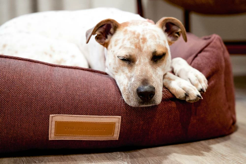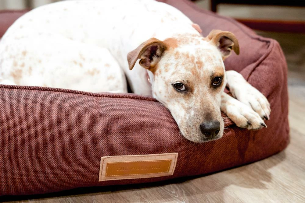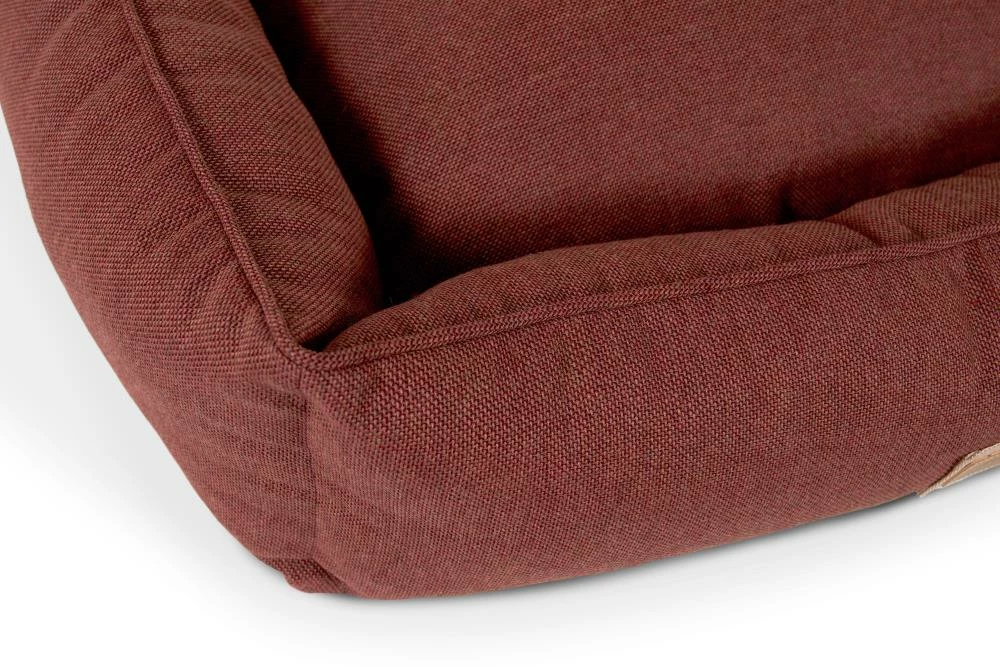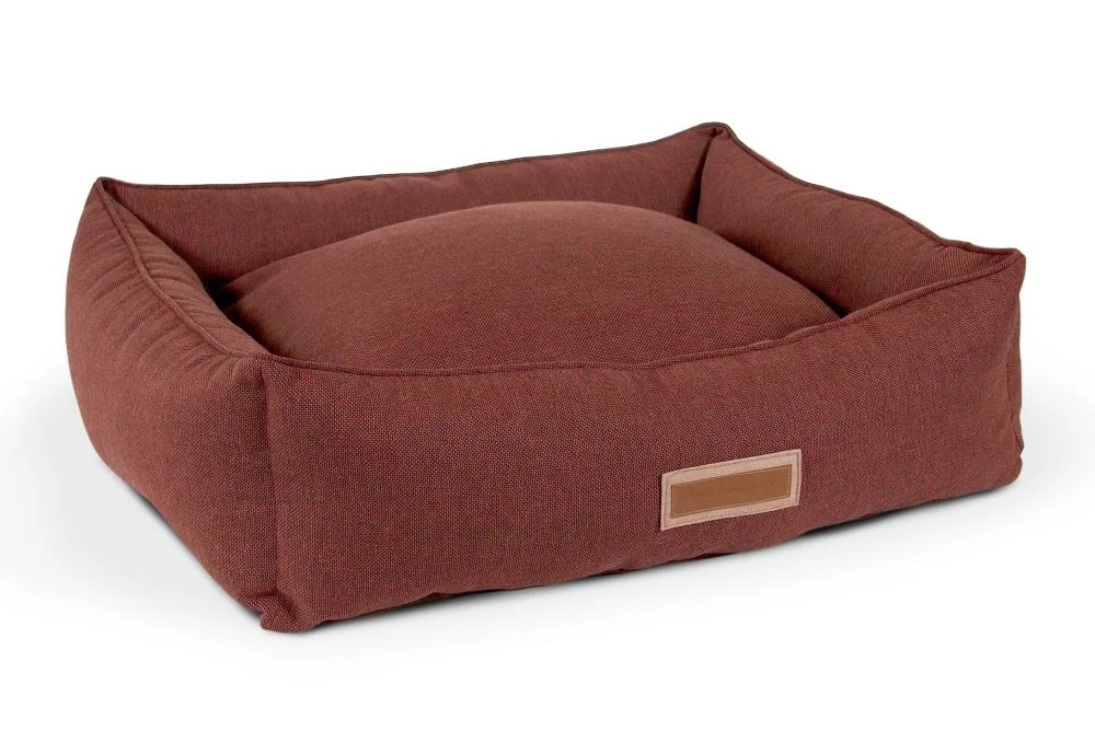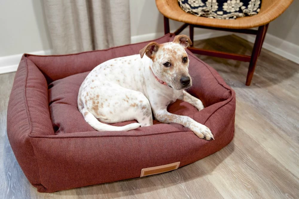 Snuggle much? For dogs that love to burrow behind cushions on the sofa, or disappear under the blankets on the bed, the Hugger makes a wonderful choice. Bolstered on all four sides, your hound is sure to find a comfortable corner to snuggle up to. The Hugger is our fluffiest, coziest bed. It’s over-stuffed with a proprietary fill made from recycled plastic water bottles that gives just the right amount to provide support and bounces back use after use. The beautifully textured russet colored Sunbrella fabric is soft to the touch, durable, resists moisture, and is washable. There is simply no better fabric choice for a pet bed. Each piece is made by hand in the USA and begins manufacturing the day you place your order. Thoughtfully designed with your dog and your home in mind, the Hugger bed performs as good as it looks.??We recommend measuring your sleeping pet to find the perfect bed size. Pets who curl up to sleep can fit on a smaller bed, while those who stretch out need a larger bed. To determine the ideal bed length, measure your pet in their typical sleeping position, then add 6-10” for the final bed size. When in doubt, we suggest ordering the size up. Please double check that you have chosen the correct size before placing your order.??Small: 24 in. x 18 in. x 7 in. high (dogs less than 30 lbs)?Medium: 30 in. x 25 in. x 8 in. high (dogs 30-60 lbs)?Large: 38 in. x 25 in. x 8 in. high (dogs 60-90 lbs)?X-Large: 44 in. x 36 in. x 10 in. high (dogs over 90 lbs)