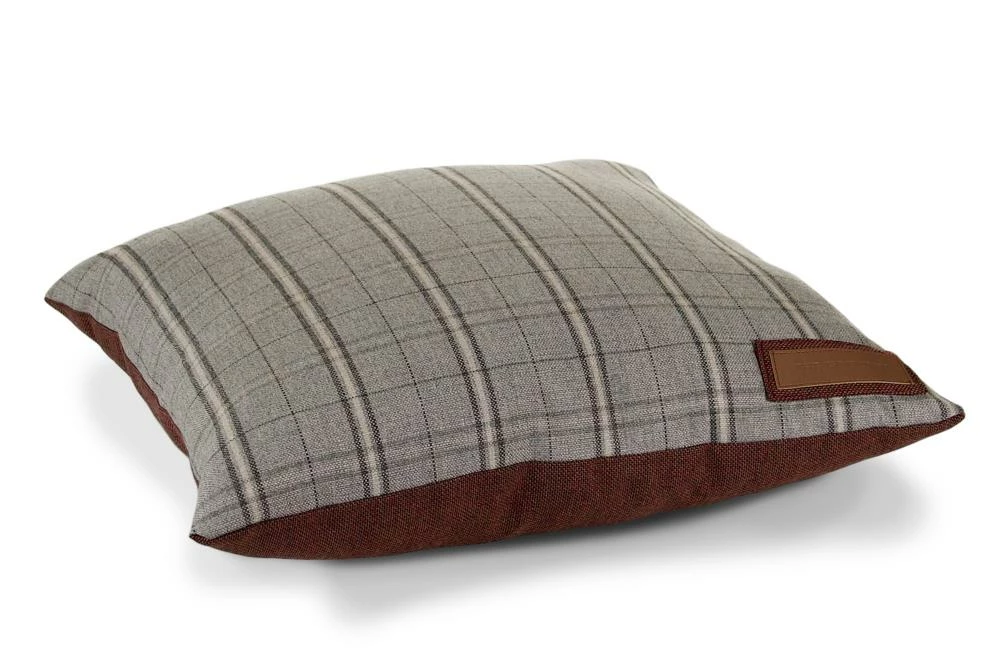 Treat your pooch to the most comfortable seat in the house. Your furry family members can sprawl, curl, lounge, and sleep to their heart’s content. Our pillow beds are over-stuffed with a proprietary fill made from recycled plastic water bottles that gives just the right amount to provide support and bounces back use after use. Tailored in menswear inspired gray and russett Sunbrella fabrics, with a vintage plaid pattern, that are soft to the touch, durable, resist moisture, and are washable. There is simply no better fabric choice for a pet bed. Each piece is made by hand in the USA and begins manufacturing the day you place your order. Thoughtfully designed with your dog and your home in mind, our pillow bed performs as good as it looks.??We recommend measuring your sleeping pet to find the perfect bed size. Pets who curl up to sleep can fit on a smaller bed, while those who stretch out need a larger bed. To determine the ideal bed length, measure your pet in their typical sleeping position, then add 6-10” for the final bed size. When in doubt, we suggest ordering the size up. Please double check that you have chosen the correct size before placing your order.??Small: 25 in. x 25 in. x 8 in. high (dogs less than 30 lbs)?Medium: 38 in. x 29 in. x 10 in. high (dogs 30-60 lbs)?Large: 47 in. x 37 in. x 10 in. high (dogs 60-90 lbs)