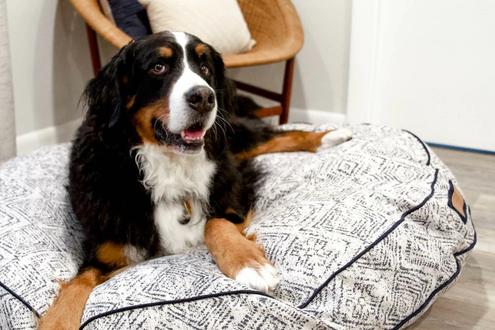 Have a dog who’s a freestyle sleeper? On their back one minute, belly the next, curled into a donut a minute later? Our round bed takes on all comers. Plush and responsive, the Round bed refuses to clump or flatten. It’s over-stuffed with a proprietary fill made from recycled plastic water bottles that gives just the right amount to provide support and bounces back use after use. Tailored in a deep indigo Sunbrella fabric, with a distressed diamond pattern, that is soft to the touch, durable, resists moisture, and is washable. There is simply no better fabric choice for a pet bed. Each piece is made by hand in the USA and begins manufacturing the day you place your order. Thoughtfully designed with your dog and your home in mind, our round bed performs as good as it looks.??We recommend measuring your sleeping pet to find the perfect bed size. Pets who curl up to sleep can fit on a smaller bed, while those who stretch out need a larger bed. To determine the ideal bed length, measure your pet in their typical sleeping position, then add 6-10” for the final bed size. When in doubt, we suggest ordering the size up. Please double check that you have chosen the correct size before placing your order.??Small: 24 in. x 24 in. x 8 in. high (dogs less than 30 lbs)?Medium: 31 in. x 31 in. x 8 in. high (dogs 30-60 lbs)?Large: 41 in. x 41 in. x 10 in. high (dogs 60-90 lbs)?X-Large: 48 in. x 48 in. x 11 in. high (dogs over 90 lbs)